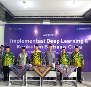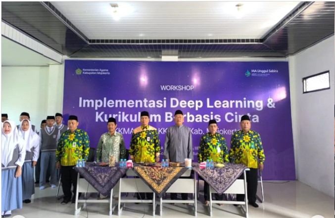 Bertempat di Aula Serbaguna MA Unggul Sabira. Kepala Kankemenag Kab Mojokerto Muttakin membuka Kegiatan Workshop Implementasi Deep Learning dan Kurikulum Berbasis Cinta KKMA 1 dan KKMA 3 Kabupaten Mojokerto. Hadir seluruh Kepala Madrasah Aliyah serta perwakilan Waka Kurikulum dan Guru dari Masing-masing Madrasah dalam naungan KKMA 1 dan KKMA 3 Kabupaten Mojokerto. Dalam sambutannya Muttakin menyampaikan bahwa dalam menyesuaikan Kurikulum yang ada harus meningkatkan Akselerasinya. Karena seluruh guru harus bisa sesegera mungkin mengimplementasikan kurikulum berbasis cinta. Selain itu Muttakin juga menyampaikan pesan menteri agama tentang Ekoteologi. Muttakin menekankan agar seluruh madrasah bisa menjaga Kebersihan dan Keindahan serta Penghijauan pada madrasah. Muttakin juga berharap agar pengawas Madrasah, Kepala Madrasah dan Seluruh Unsur Waka di madrasah bisa menjadi satu kesatuan. Dengan adanya sinergi dengan Pengawas Muttakin berharap seluruh madrasah bisa mengupdate informasi terbaru baik tentang regulasi serta aturan aturan terbaru maupun perkembangan kurikulum yang ada. Apalagi pengawas kabupaten Mojokerto sudah mempunyai aplikasi baru yaitu MODISS. Ayo manfaatkan semaksimal mungkin aplikasi tersebut. Karena hanya mojokerto satu-satunya pengawas madrasah yang mempunyai aplikasi khusus untuk madrasah SE Jawa Timur. Ayo terus kembangkan innovasi pembelajaran di madrasah semoga dengan adanya kegiatan workshop ini madrasah kita bisa semakin maju dan berkembang.
