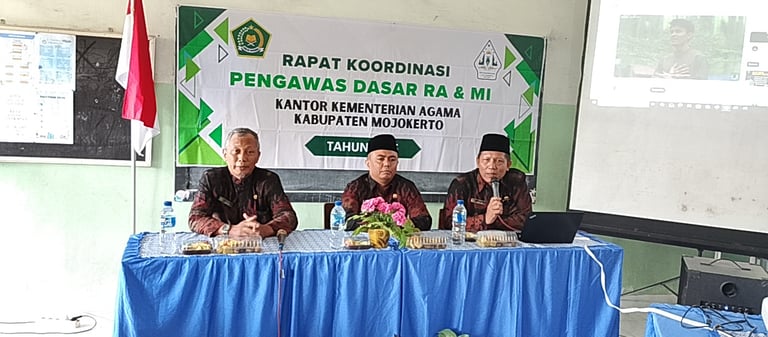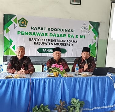 Bertempat di MI Irsyadul Ummah Kec. Gedeg Kabupaten Mojokerto, Korwas Dasar Kantor Kementerian Agama Kab. Mojokerto mengadakan Rapat koordinasi yang dihadiri pengawas madrasah jenjang RA/MI se Kab. Mojokerto