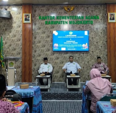 Bertempat di Hall Nusantara Kankemenag Kab Mojokerto, Kepala Kankemenag Kab Mojokerto Muttakin didampingi Kasi Pendma Masruchan dan Ketua Pokjawas Muhammad Zaenuri Membuka Kegiatan Launching Website Pokjawas Madrasah Kab. Mojokerto (MODISS) dan Diseminasi Bimtek Pembelajaran Mendalam (PM), Kurikulum Berbasis Cinta (KBC), Pendidikan Perubahan Iklim (PPI), Madrasah Ramah Anak (MRA) dan Madrasah Inklusi. Dalam sambutannya Muttakin sangat mengapresiasi kegiatan ini. Beliau yakin dengan adanya kegiatan ini Pengawas yang ada di Kabupaten Mojokerto selalu ingin berkembang sesuai dengan regulasi yang ada. Muttakin berharap seluruh pengawas di kabupaten Mojokerto harus bisa lebih didepan dalam hal perubahan Kurikulum yang ada. Selain itu pengawas madrasah harus memahami kebijakan kebijakan yang bisa mendukung kegiatan yang ada di madrasah. Agar bisa mengarahkan madrasah yang ada di kabupaten Mojokerto bisa menjadi lebih berkembang. Muttakin juga berpesan untuk website baru pengawas, agar selalu mengupdate isi serta fitur yang ada di website tersebut. Isi website dengan regulasi regulasi terupdate agar madrasah bisa mengakses dan memperoleh informasi tentang regulasi terbaru. Semoga Pengawas Madrasah Kabupaten Mojokerto bisa semakin berkembang.