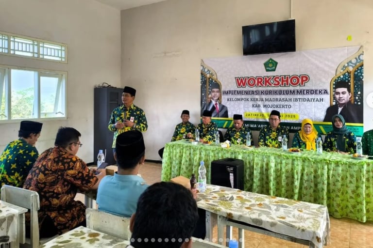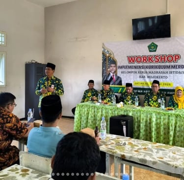 Kepala Kankemenag Kab Mojokerto Muttakin didampingi Kasi Pendma Ama Noor Fikry Membuka Kegiatan Workshop Implementasi Kurikulum Merdeka KKM MI Kecamatan Jatirejo, Gondang dan Trawas yang bertempat di Aula Serbaguna MI Sunan Ampel Jatirejo. Turut mendampingi Pengawas dasar Kecamatan Jatirejo, Gondang dan Trawas. Kegiatan dihadiri seluruh kepala madrasah ibtidaiyah dan perwakilan guru kecamatan Jatirejo, Gondang dan Trawas. Dalam sambutannya Muttakin sangat mengapresiasi kegiatan ini. Kegiatan ini merupakan bukti bahwa semangat Guru-guru MI di kabupaten Mojokerto sangat tinggi untuk terus meningkatkan Kapasitasnya. Muttakin juga berharap kemauan dan kemampuan tiap guru untuk menyesuaikan diri terhadap perubahan harus ditanamkan. Karena di era modern ini guru wajib bisa menyesuaikan diri untuk perubahan Kurikulum yang ada.. selain itu setiap guru wajib berinovasi untuk pembelajaran. Tingkatkan terus skill dalam berinovasi agar siswa nyaman dan mudah memahami dalam pembelajaran. Tingkatkan terus kepercayaan masyarakat terhadap Madrasah. Semakin tinggi prestasi yang diraih siswa-siswi di madrasah. Itu adalah salah satu media promosi kita kepada masyarakat. Mari kita wujudkan madrasah yang semakin bermutu dan berkembang.